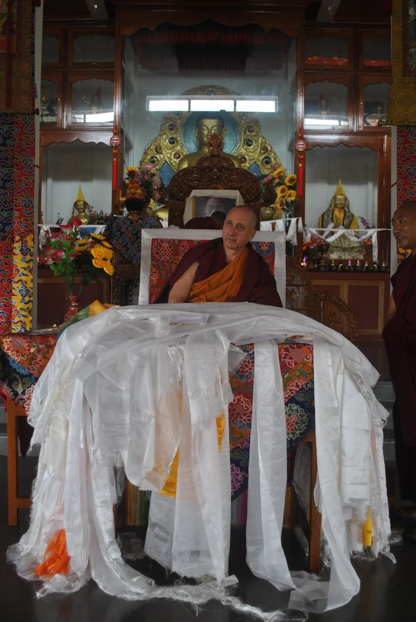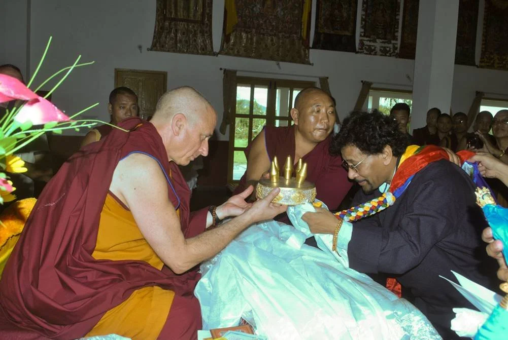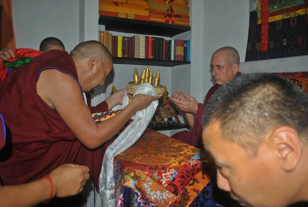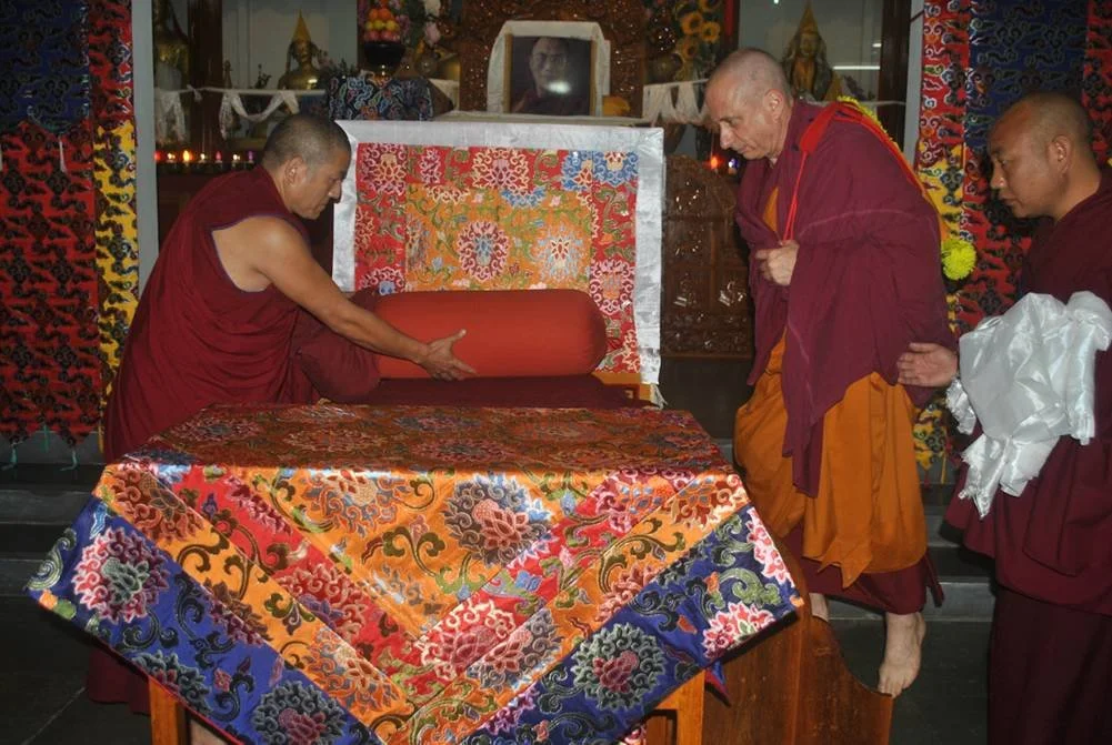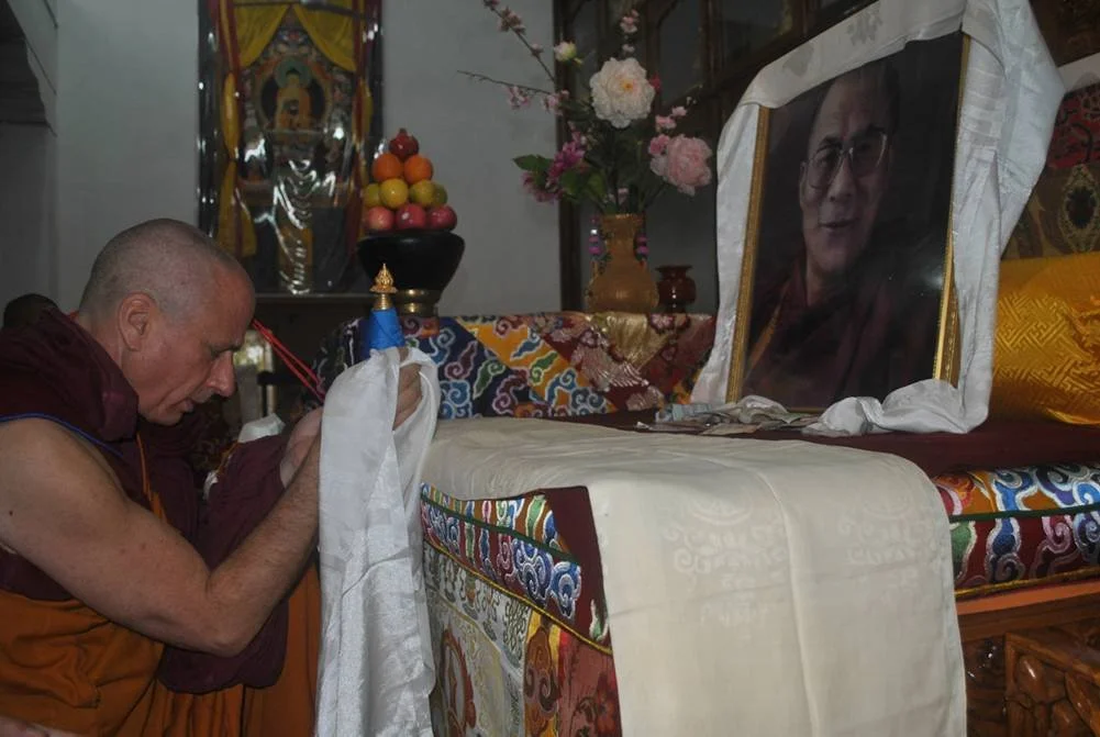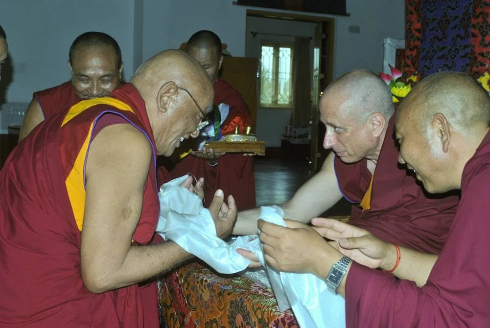 On the passing into peace of Rato Khyongla Rinpoche, Ngawang Lobsang Shedrub Tenpai Dronme, I have been entreated by the abbot of Rato Monastery, Tenzin Chodrak (Nicholas Vreeland) who lived with Rinpoche, by Rato Monastery, by Nyare Khangtsen, and by the American Dharma Center Kunkhyab Thardo Ling (The Tibet Center), imploring: “We need a prayer for the swift return of the incarnation of our Guru.” Furthermore, I myself summoned Rinpoche to accompany me when I was invited to celebrate the (two thousand five hundredth) anniversary of the Parinirvana of Lord Buddha in India. Also, when I sat for my debate examination on completing my monastic education, he was among those called on to debate with me. Later, when we came to India, as he was the heart son of Yongdzin Rinpoche Ling Dorje Chang, I asked him in the nineteen-sixties to go to teach in Western countries such as America, and during the time he was living there I had him carry out in various ways my vision. For those and other reasons, he became a trusted person with whom I could discuss inner matters. Now, since the one who passed away was rich in empowerments and transmissions and possessed vast knowledge of both Sutra and Tantra, not only do I mourn the loss of the senior student of my teacher Yongzin Rinpoche Ling Dorje Chang, but it is a great tragedy for the Geluk tradition in general, a cause for consternation. However, due to his pure motivation towards the Dharma, and his love for sentient beings, it is definite that Rinpoche will return. On this 28th day of the third month of the water tiger year of the sixteenth Tibetan cycle, which is the 27th day of May, 2022 of the western calendar, I—his Dharma friend, the Shakya Bhikshu and Propounder of Dharma, the Dalai Lama—have composed this prayer for Rinpoche’s swift return.